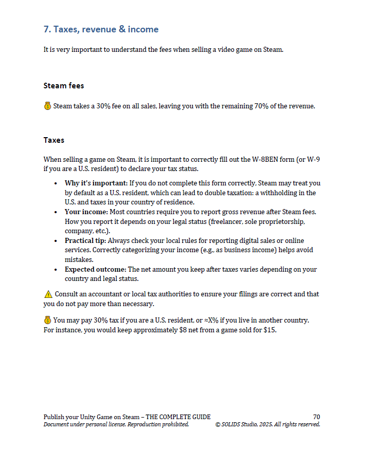 - The guide sample in PDF: "Publish your Unity game on Steam – THE COMPLETE GUIDE (2025 Edition) - Free Sample" (19 pages)
